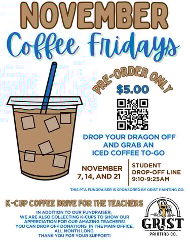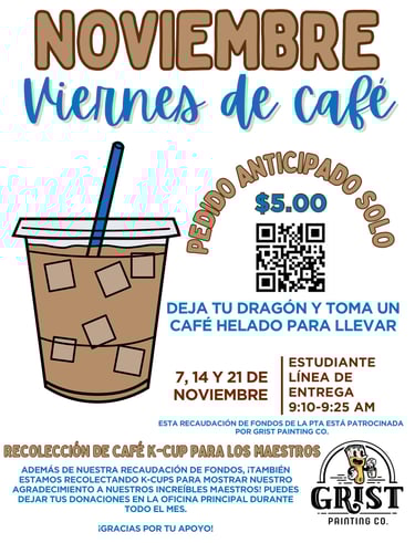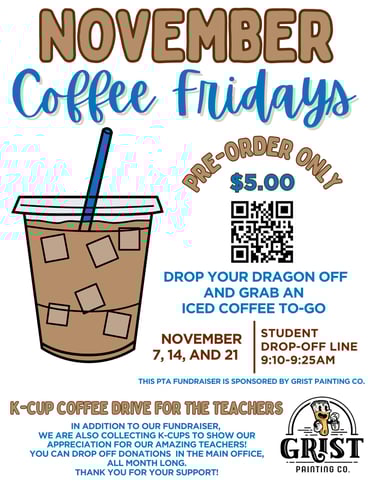 11/7, 11/14, and 11/21 - Student drop off line 9:10am - 9:25am pre-order via the QR code